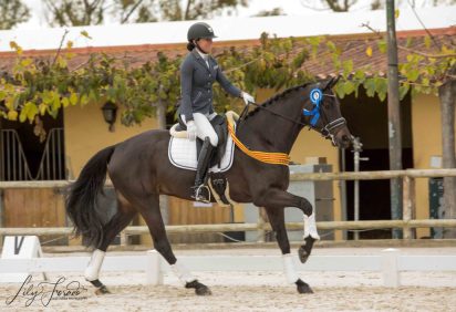 La primera potra nacida en SSHANNOVERIANOS hija de DREAM IN BLACK y SENIORITA, debuta ganando su prueba ( caballos de 4 años) con una media de 70,400 y unas notas de 7 y 7,5 gustando mucho a los jueces . Nuestra mas enhorabuena a sus propietarios.
