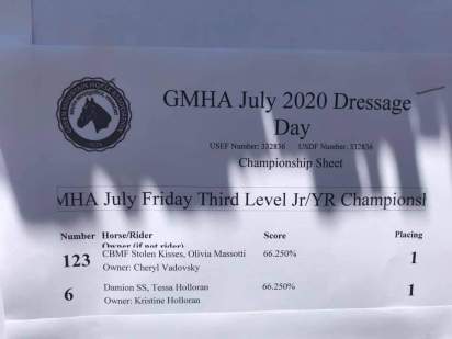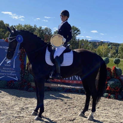DAMION SS (Dream in Black x Seniorita) y su amazona TESSA HOLLORAN ganan el 2020 Medalla Dressage SEAT CHAMPION REGION 8 SEMIFINALS 14-18.