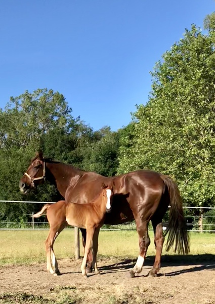 El resutado fue SACHA SS, una preciosa potra castaña, cuatralba y con una singular marca en la frente... una (S).