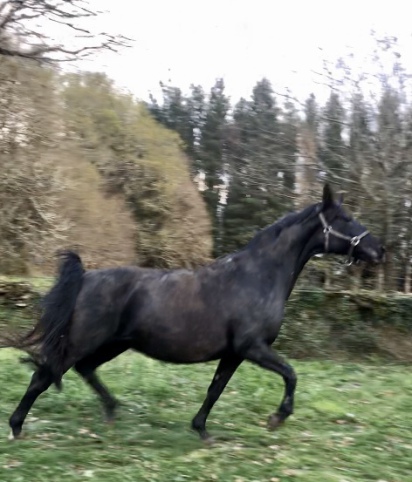 Es una yegua con mucho muelle, con buena elevacion y con unos posteriores potentes muy bien insertados debajo de la grupa.